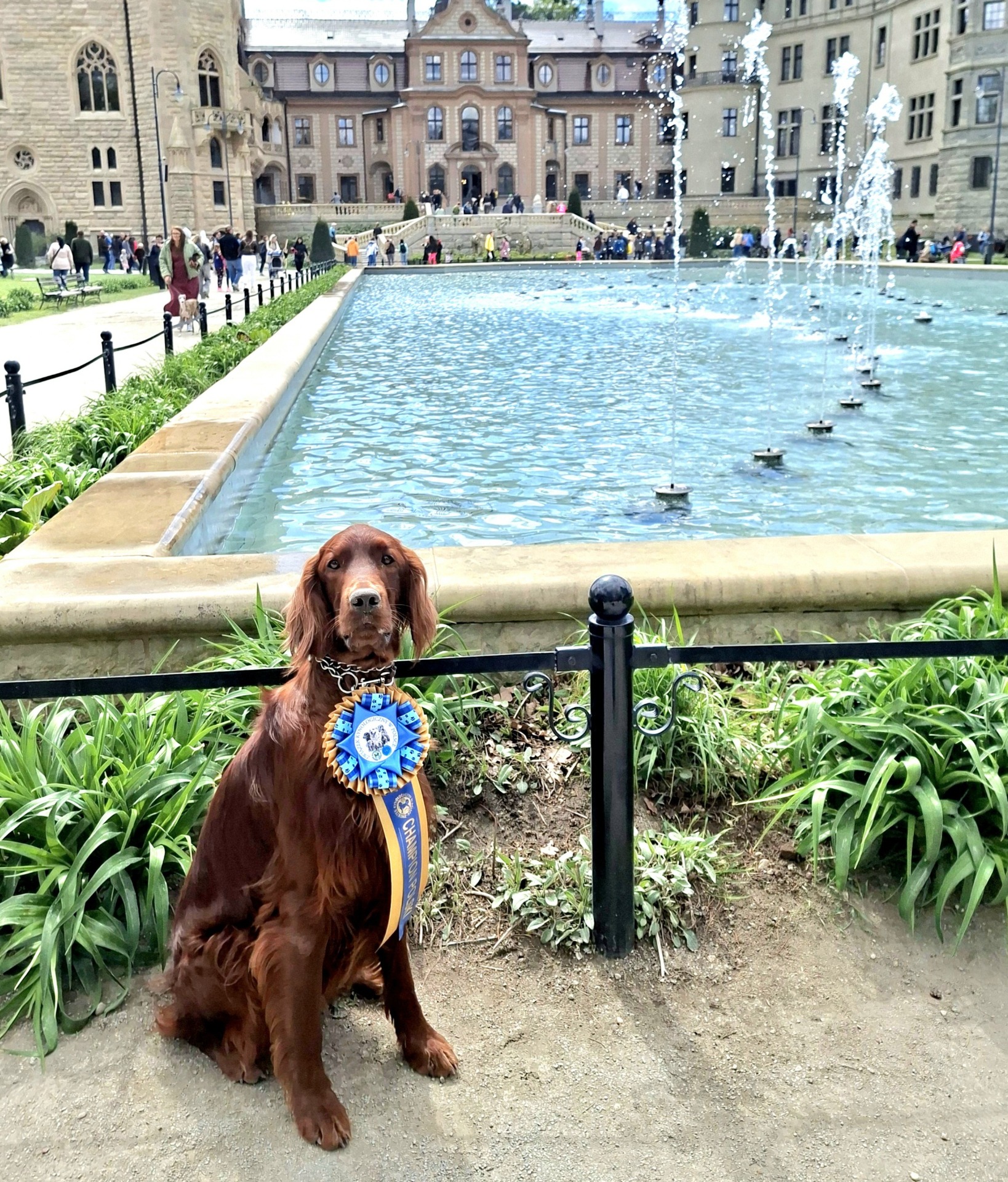 Úspěšný víkend jsme zakončili 26.4. na výstavě Opople / Mozsna na Mezinárodní výstavě v Polsku. Krásné exteriéry místního zámku dotvořily milou atmosféru. I přes náročné podmínky malých kruhů, obrovského množství lidí a časového posunu hodinu a půl jsem splnil cíl naší cesty a odvezl jsem si hodnocení excelent 1 a potřebný CAC k dokončení titulu Polský šampion krásy.