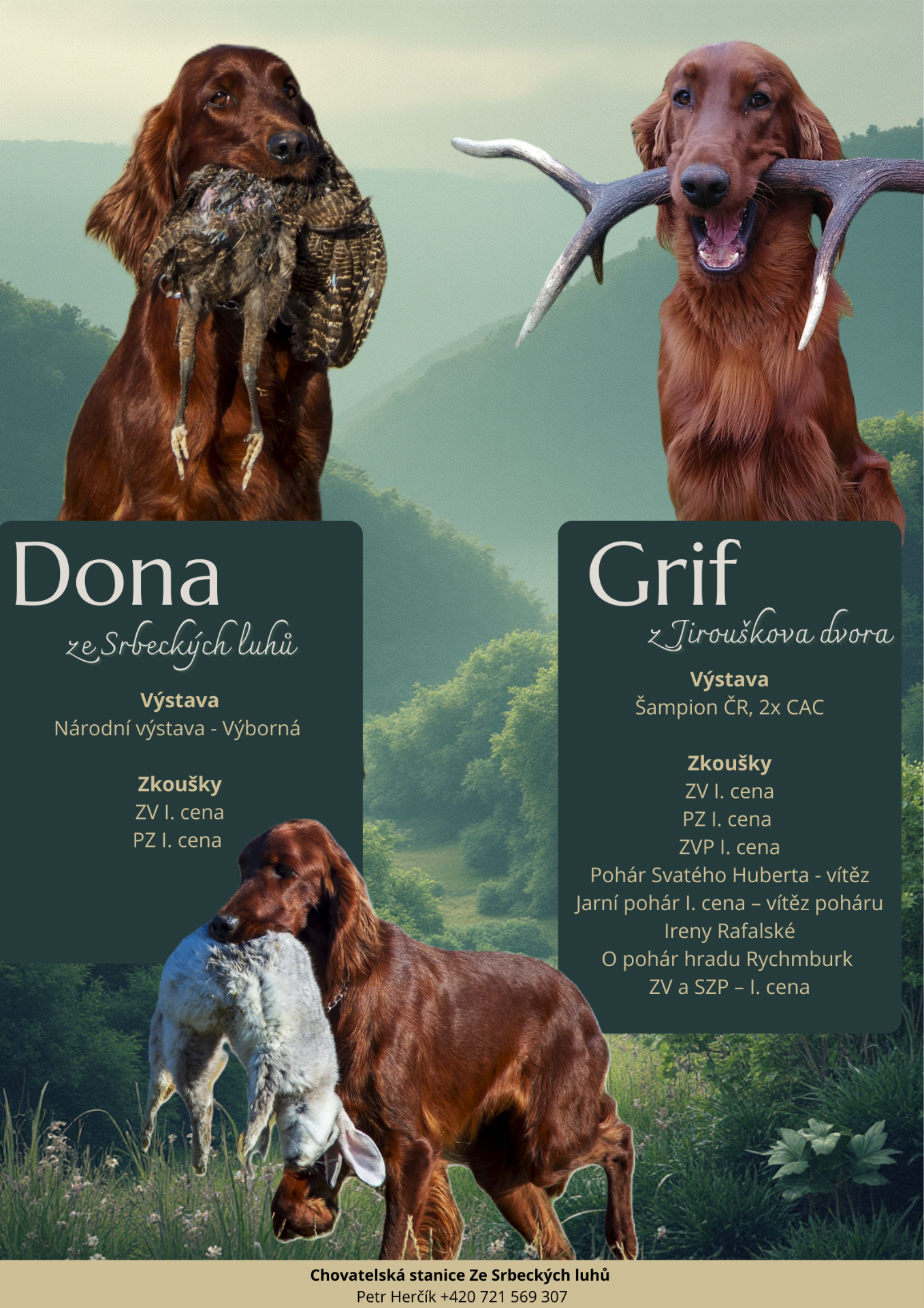 Chovatelská stanice ze Srbeckých luhů se věnuje chovu irských setrů desítky let. Hlavní důraz chovatelské linie je kladný především na kvalitní loveckou práci a psi z této chovatelské stanice jsou velmi ceněni nejen myslivci, kterým jsou skvělými pracovními partnery při výkonu.